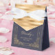 Thank birthday party guests with these elegant favor boxes, featuring an ornate rectangular faux gold frame on a dark navy blue background, with a faux gold foil and satin striped back and flap. Personalize them with the guest of honor's name in gold colored script, along with the occasion and date in gold copperplate font.