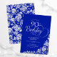 90th Birthday Elegant Royal Blue Silver Roses Invitation