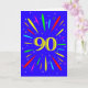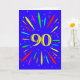 An explosive 90th birthday card! What a wonderful way to send birthday greetings. The number 90 in bright yellow with an explosion of bright colors and stars.