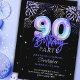 90th Birthday for Him Blue Fireworks Foil Balloon Invitation