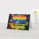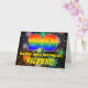 The front of this vibrant and colorful birthday-themed greeting card design features a large number “90” with a multicolored rainbow spectrum inspired gradient pattern, along with the message “HAPPY 90th BIRTHDAY,”, and a custom recipient name. The background of the front features a joyful, multicolored pattern that resembles bursting celebratory fireworks. The inside has a customizable birthday greeting message, or could perhaps be cleared and left blank if a message is to be written by hand instead. An upbeat, personalized birthday greeting card like this might be a fun way to send a birthday greeting message to somebody who is celebrating their ninetieth birthday. [~Z0000619]