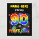 90th Birthday - Fun Fireworks, Rainbow Look "90" Postcard