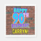 This fun birthday themed paper napkin design features the message “HAPPY 90TH BIRTHDAY,” having a vibrant, colorful, urban street art and graffiti inspired look, plus an editable recipient name. The background features a brick wall inspired pattern. Paper napkins like this might be used when celebrating somebody’s 90th birthday. [~Z0000534]
