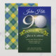 Celebrate a milestone in style with this elegant 90th birthday golf-themed invitation—perfect for honoring a lifetime of memories with a fun, sophisticated design guests will love. Featuring a golf ball, banner and fun party font. Backer is green and gold plaid.