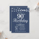 90th Birthday Invitation with String Lights. Blue Background. Men or Women Birthday. 13th 15th 16th 18th 20th 21st 30th 40th 50th 60th 70th 80th 90th 100th, Any age. For further customization, please click the "Customize it" button and use our design tool to modify this template.