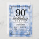 90th Birthday Invitation Blue Glitter