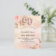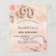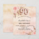 A rose gold, blush pink rustic faux metallic looking background. Decorated with rose gold and pink florals, roses, pampas grass. Personalize and add a name and party details. Number 90 is written with a balloon style font.
