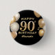 90th Birthday Party Black and Gold Balloons and Confetti Button. For further customization, please click the "Customize it" button and use our design tool to modify this template.