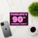 The front of this bold and fun ninetieth birthday party/celebration foil invitation/announcement card features a personalized name, a large number “90th”, the message “BIRTHDAY PARTY!”, and a border, all featuring a feminine light pink and dark pink lines pattern. The back features personalized details about the event, such as the date, time, venue/place, and any other information that may be relevant. Customized invitations like these might be used to invite attendees to a birthday gathering being held to honor somebody’s 90th birthday. [~Z0000597]
