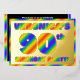 The front of this exciting ninetieth birthday party/celebration foil invitation card features a personalized name, a large number “90th”, the message “BIRTHDAY PARTY!”, and a border, all featuring a fun, multicolored, rainbow spectrum inspired gradient pattern. The back features personalized details about the event, such as the date, time, venue, and any other important information. Eye-Catching, vibrant, editable invitations like these might be used to invite guests to a birthday gathering/party being held to celebrate somebody’s 90th birthday. [~Z0000593]