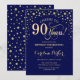 Plain white envelopes are included with paper invitations and will come to fit the invitation size you select. If you don’t need the envelopes, you may choose to not receive them by selecting the dropdown below "Envelopes" and choosing "None." If you’d like to have a design on your envelopes, you can browse all of these available envelopes to find the design that complements your 90th Birthday Party Invitation Gold Navy Blue.