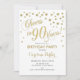 90th Birthday Party Invitation - Gold White