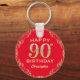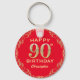 90th Birthday Party Red and Gold Glitter Frame Keychain. For further customization, please click the "Customize it" button and use our design tool to modify this template.