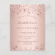 A modern, stylish and glamorous invitation for a woman's 90th birthday party. A faux rose gold metallic looking background with an elegant faux rose gold twinkling stars. The name is written with a modern dark rose gold colored hand lettered style script. Templates for your party details.
