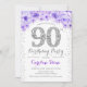 90th Birthday Party - White Silver Purple Invitation
