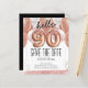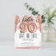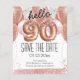 hello 80 birthday party save the date pink glitter balloons. Save the date rose gold number balloons with faux pink glitter. Girly, elegant, trendy. Easy to adjust template.