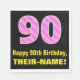 90th Birthday: Pink Stripes and Hearts "90" + Name Napkins