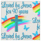 This joy filled 90 year old loves Jesus every day of her beautiful and religious life. This delightful special lady has been loved by Jesus for 90 years. Enjoy this rainbow, cross and butterfly 90 year design on Tees, Mugs, Tote Bags and Gifts. Your lovely and uplifting 90 year old will adore this unique and one of a kind 90th customized birthday gift that she will treasure every year. Celebrate turning 90 with a beautiful 90th birthday prayer. Give the gift of an original 90th birthday design to rejoice in turning 90.