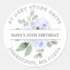 Add a special touch to your birthday invitation envelopes with this elegant round design. It features a bouquet of dusty blue roses in the center. Sage green leaves give it a rustic botanical vibe. The name is written across the center on a white strip, and the address is added in curved text above and below the rose bouquet.
