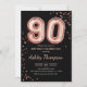 90th Birthday - Rose Gold Balloons Black Invitation