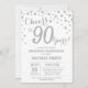 90th Birthday Silver Glitter Diamond Invitation