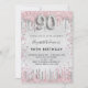 90th birthday silver pink glitter invitation