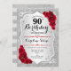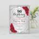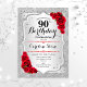 90th Birthday - Silver Stripes Red Roses Invitation