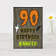 The front of this scary and spooky Halloween birthday themed greeting card design features a large number "90". It also features the message "HAPPY BIRTHDAY,", plus a customizable name. There are also depictions of a bat and a ghost on the front. The inside features a custom birthday greeting message, or could perhaps be cleared and left blank if a message is to be written by hand instead. A personalized birthday card like this might be a fun way to send birthday wishes to somebody who is celebrating their ninetieth birthday and who was also born on October 31st (Halloween). [~Z0000410]
