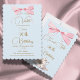Soft blue with pink bow in a pastel hue.