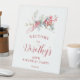 Welcome guests to your birthday party with this elegant winter floral welcome sign. A pretty arrangement of deep red berries and soft sage green leaves decorate the sign. All the text can be edited