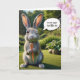 A winking gray rabbit sits in a lush garden holding a carrot for a 90th birthday.