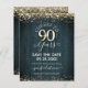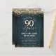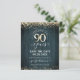 Elegant Faux gold glitter with shimmering confetti highlights on the top and bottom border. All text is adjustable and easy to change for your own party needs. Great elegant 90th birthday template design. Faux wood blue textured background makes a perfect gender neutral party invitation.