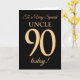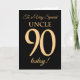 90th Gold-effect on Black, for Uncle Birthday Card