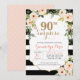 90th Surprise Black White Stripe Floral Birthday Invitation
