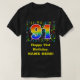 This fun, vibrant, and colorful birthday shirt design features a large number "91" with a rainbow spectrum gradient inspired pattern, along with the message "Happy 91st Birthday,", and a personalized name. A fun pattern of various music notes and music symbols having a variety of sizes and colors appears behind the rainbow-colored birthday number. Fun, personalized birthday themed shirts like this might be worn by the attendees at a birthday party being held to honor a song composer’s, a musician’s, a singer’s, or somebody else’s 91st birthday. [~Z0000428]
