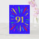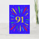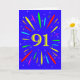 An explosive 91st birthday card! What a wonderful way to send birthday greetings. The number 91 in bright yellow with an explosion of bright colors and stars.