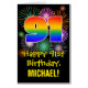 91st Birthday: Fun Fireworks Pattern & Rainbow 91 Card