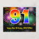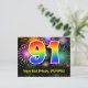 91st Birthday – Fun Fireworks Pattern + Rainbow 91 Postcard