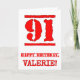 91st Birthday: Fun, Red Rubber Stamp Inspired Look Card