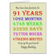 91st birthday card counting down the years, days, months, hours, and minutes. A card to give pause for thought! Leap years have been taken into account!