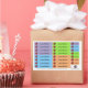 DIY pen stickers with a small red marijuana beetle on a background in purple, blue, green and orange - to cut, for children, with name personalizable. Made of 64 pin stickers - approximately 4.45 cm x 0.79 cm Made of 28 Mini-Pen stickers - approximately 2.2 cm x 0.79 cm Cut and paste on the black line. Ideal for personalizing small objects like pens. Great gift idea to start school or start a kindergarten.