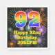 92nd Birthday: Fun Fireworks Pattern + Rainbow 92 Napkins