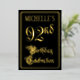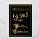 The front of this elegant, ornate, foil ninety-second birthday party/celebration invitation design features the message “92nd Birthday Celebration” in opulent script-style text. It also has a custom name. The background of the front is colored black by default (although it can be customized to a different color). The back features personalized details about the event, such as the date, time, location, and any other information that may be relevant. Fancy, luxurious, customizable invitations like these might be used to invite guests to a birthday celebration being held to celebrate somebody’s 92nd birthday. [~Z0000589]