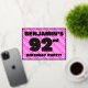 The front of this joyful and loving ninety-second birthday celebration/party foil invitation card design features a personalized name, a large number “92nd”, the message “BIRTHDAY PARTY!”, and a border. The background of the front features a fun light pink and dark pink striped pattern containing heart shapes. The back features personalized details about the event, such as the date, time, location/venue, and any other useful information. Personalized invitations like these might be a fun way to invite guests/attendees to a birthday gathering/party being held to honor somebody’s 92nd birthday. [~Z0000603]