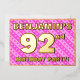 92nd Birthday Party — Fun Pink Hearts and Stripes Foil Invitation