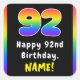 92nd Birthday: Rainbow Spectrum # 92, Custom Name Square Sticker