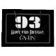 This 1920s-1930s appearance inspired vintage look birthday gift bag design features a large art deco style inspired number "93", the message "Happy 93rd Birthday,", a personalized name, and a border pattern consisting of thin lines. The background is colored black. A gift bag like this may be used when wrapping a birthday present or gift being given to somebody who is celebrating their ninety third birthday. [~Z0000495]
