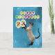 A playful siamese cat chasing balloons. A great way for a cat lover to send a birthday card.
