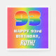 This exciting and fun birthday-themed paper napkin design features a large number “93” with a colorful rainbow spectrum inspired gradient pattern, along with the message “HAPPY 93rd BIRTHDAY,”, and an editable recipient name. The background also features a vibrant multicolored rainbow spectrum inspired gradient pattern. Joyful birthday themed paper napkins like this might be used at a party celebrating somebody’s ninety third birthday. [~Z0000573]