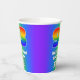 This joyful and exciting birthday-themed paper cup design features a large number “93” having a colorful rainbow spectrum inspired gradient pattern. It also features the message “HAPPY 93rd BIRTHDAY,”, and a custom name. The background also features a vibrant multicolored rainbow spectrum inspired gradient pattern. Paper cups like this might be used at a birthday party for somebody who is celebrating their ninety third birthday. [~Z0000576]